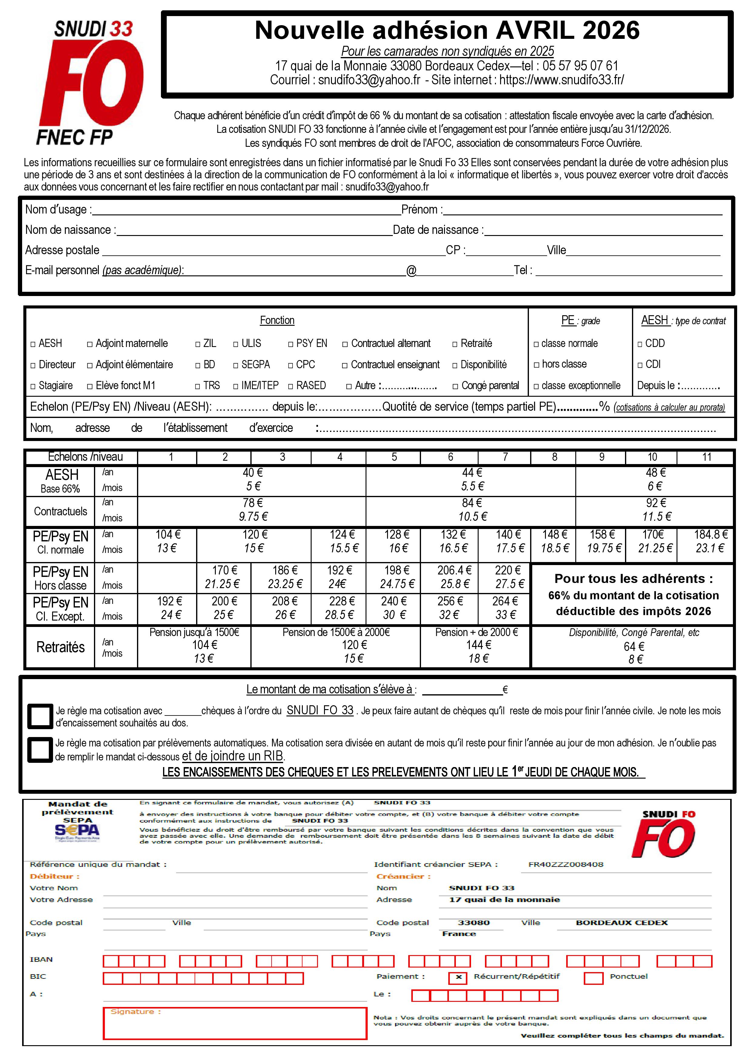 Pour adhérer au SNUDI FO 33, rien de plus simple :