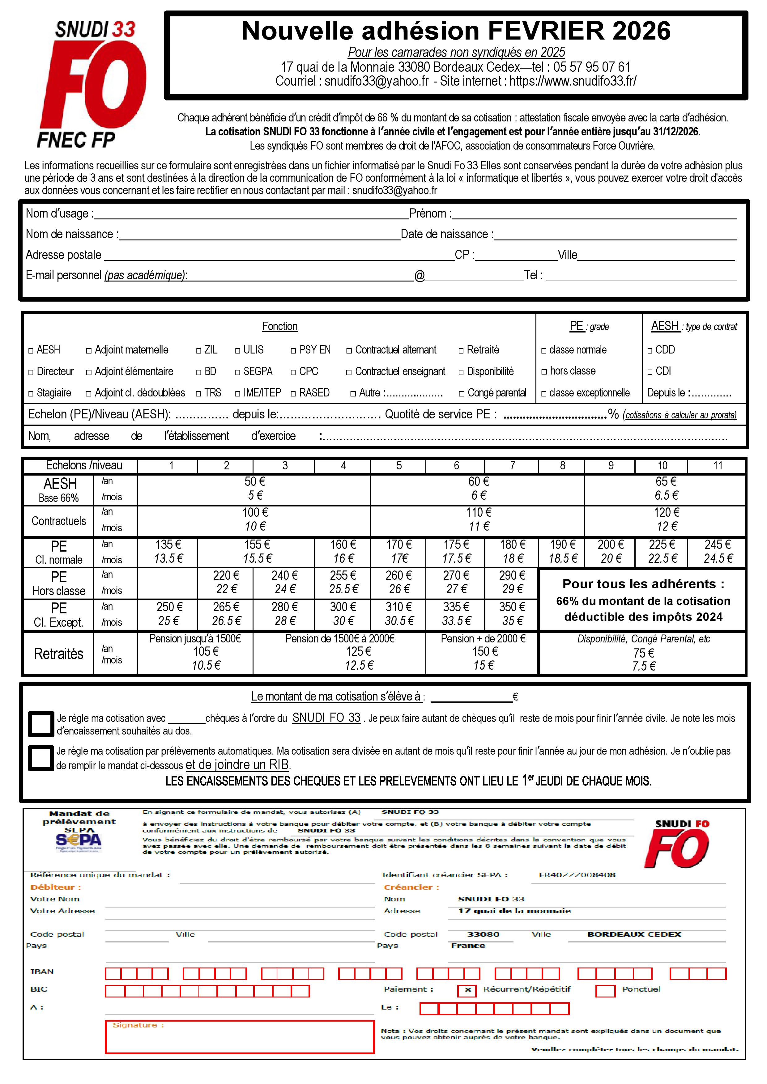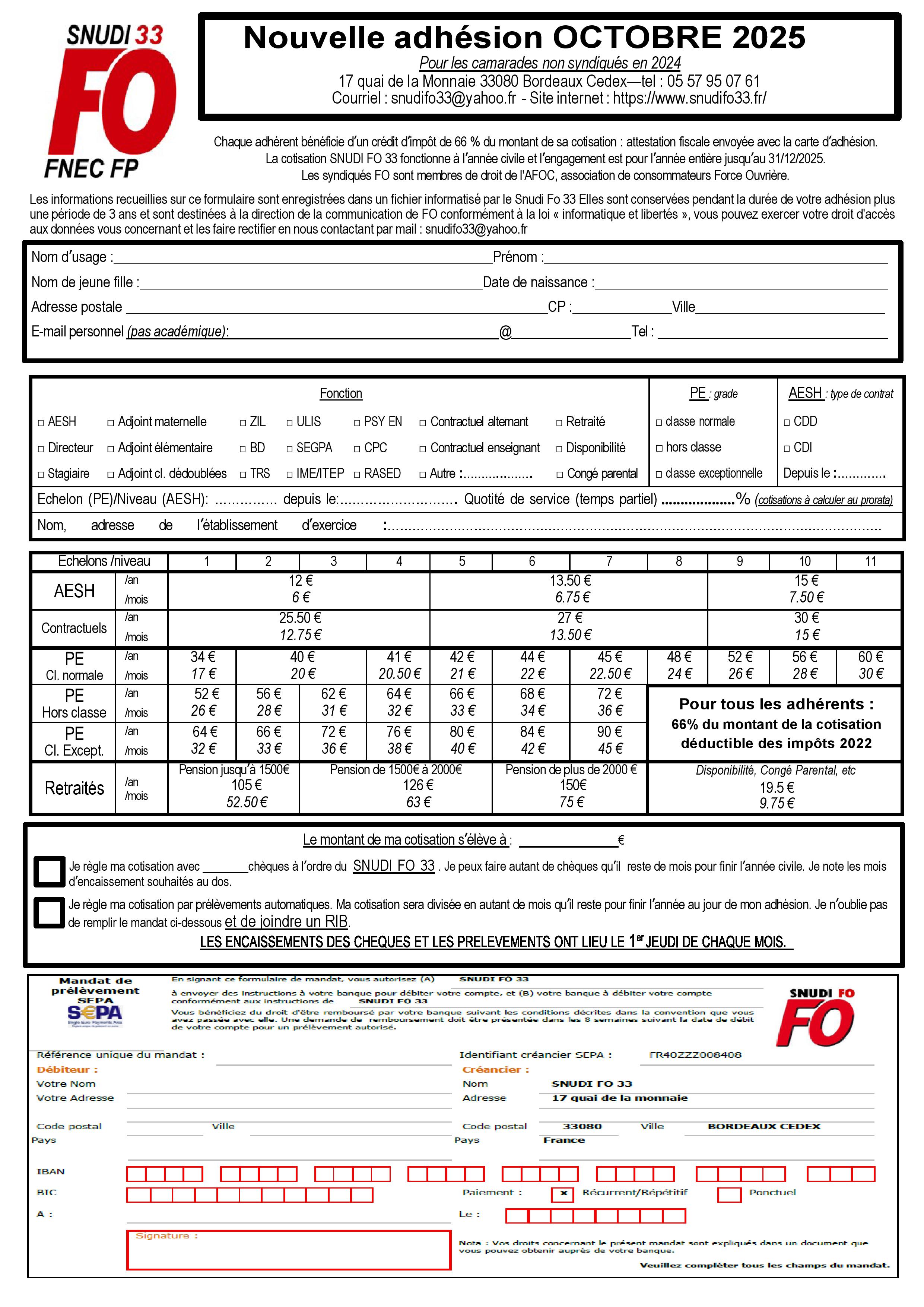 Pour adhérer au SNUDI FO 33, rien de plus simple :