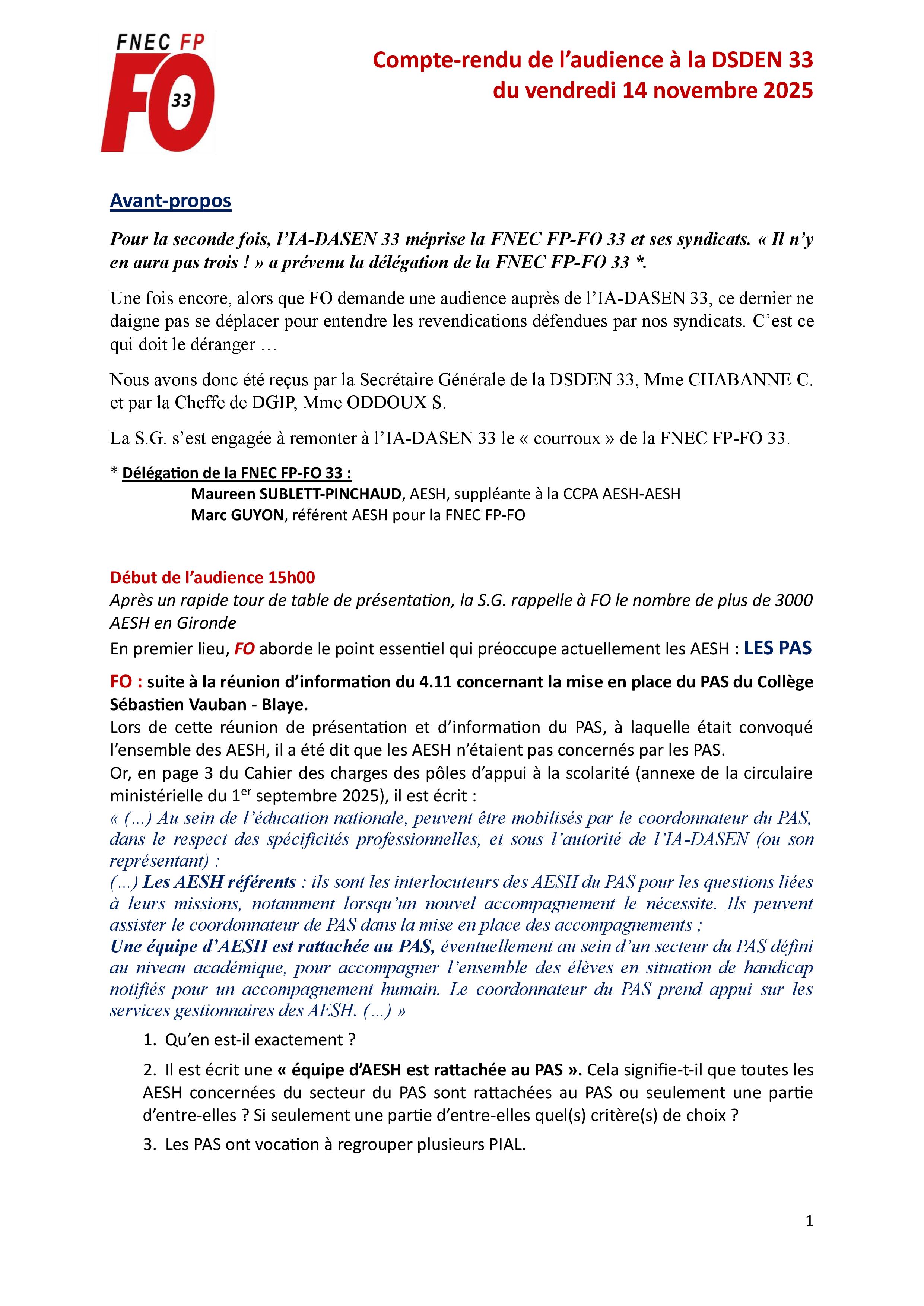 Compte-Rendu audience AESH DASEN- vendredi 14 novembre