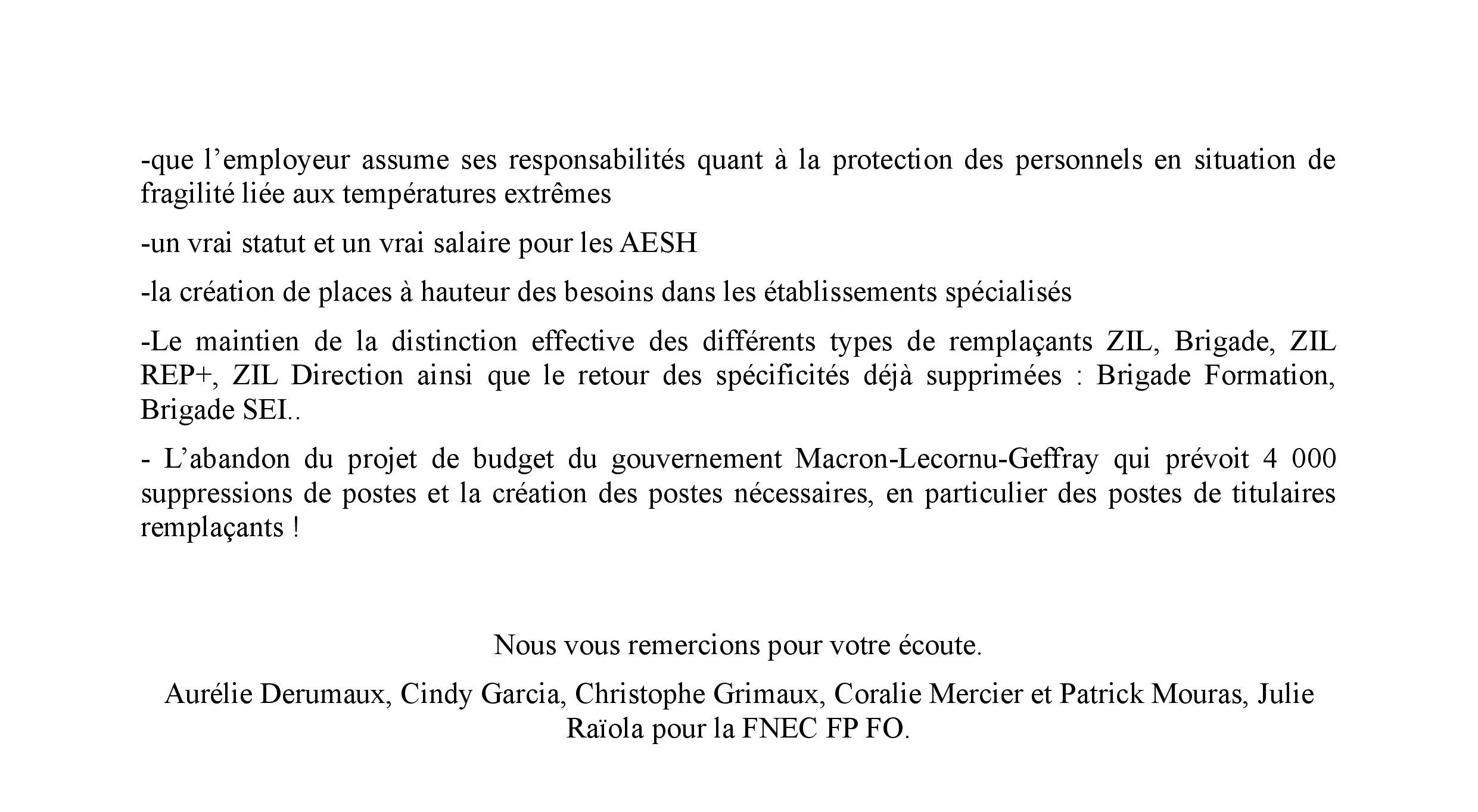 Ainsi, c'est de manière intersyndicale que les membres de la F3SCT ont demandé au Directeur Académique de se positionner sur :