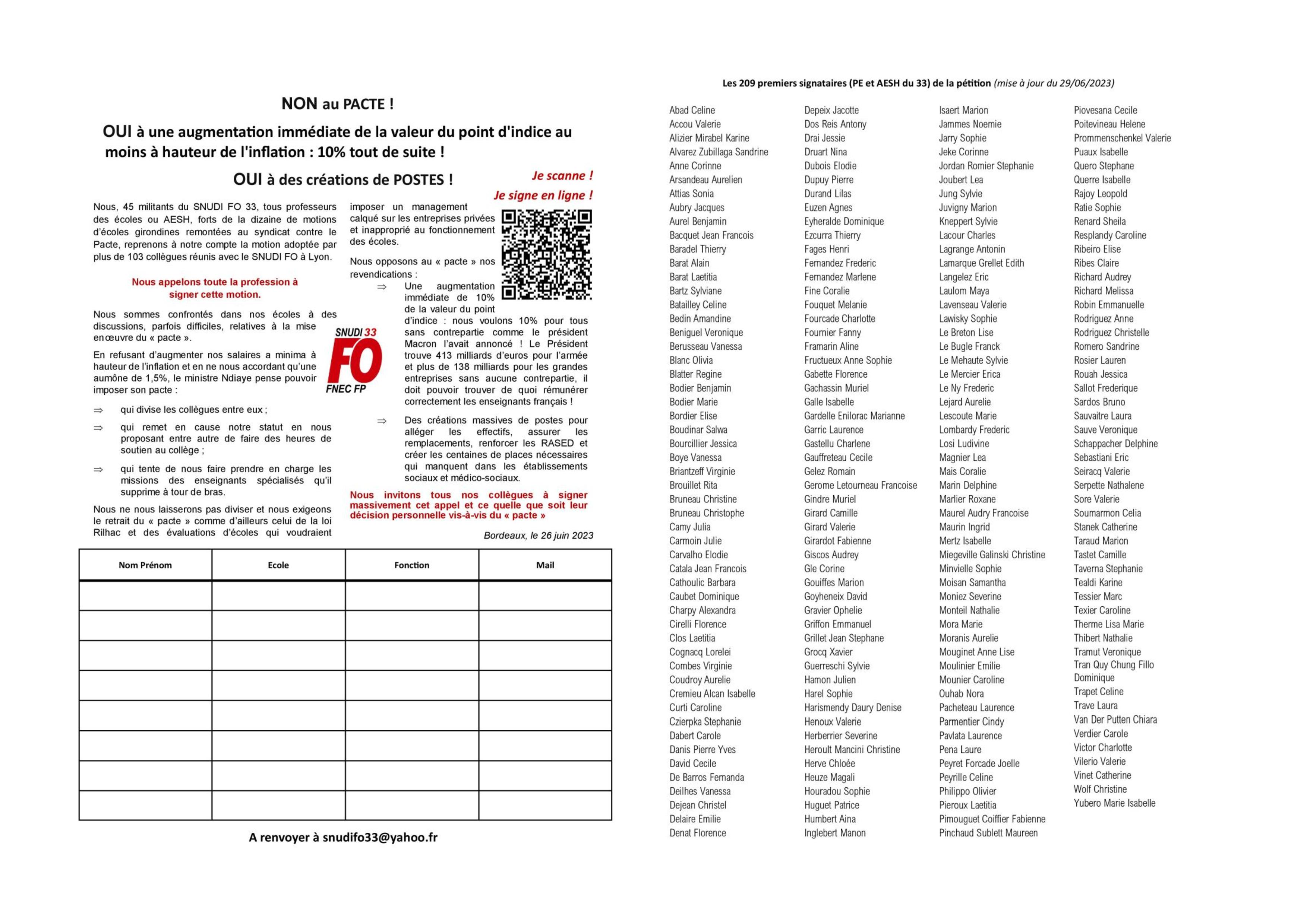 Renforcez les 350 premiers signataires (PE et AESH du 33) : mise à jour du 06/07/2023