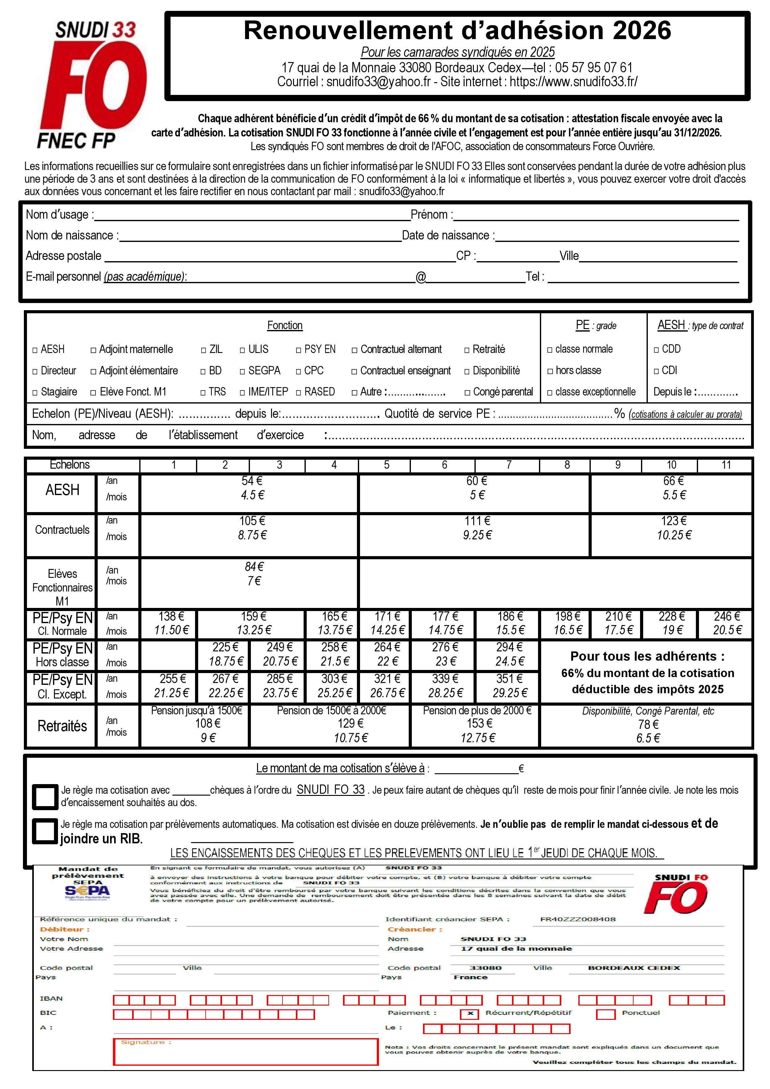 Pour adhérer au SNUDI FO 33, rien de plus simple :