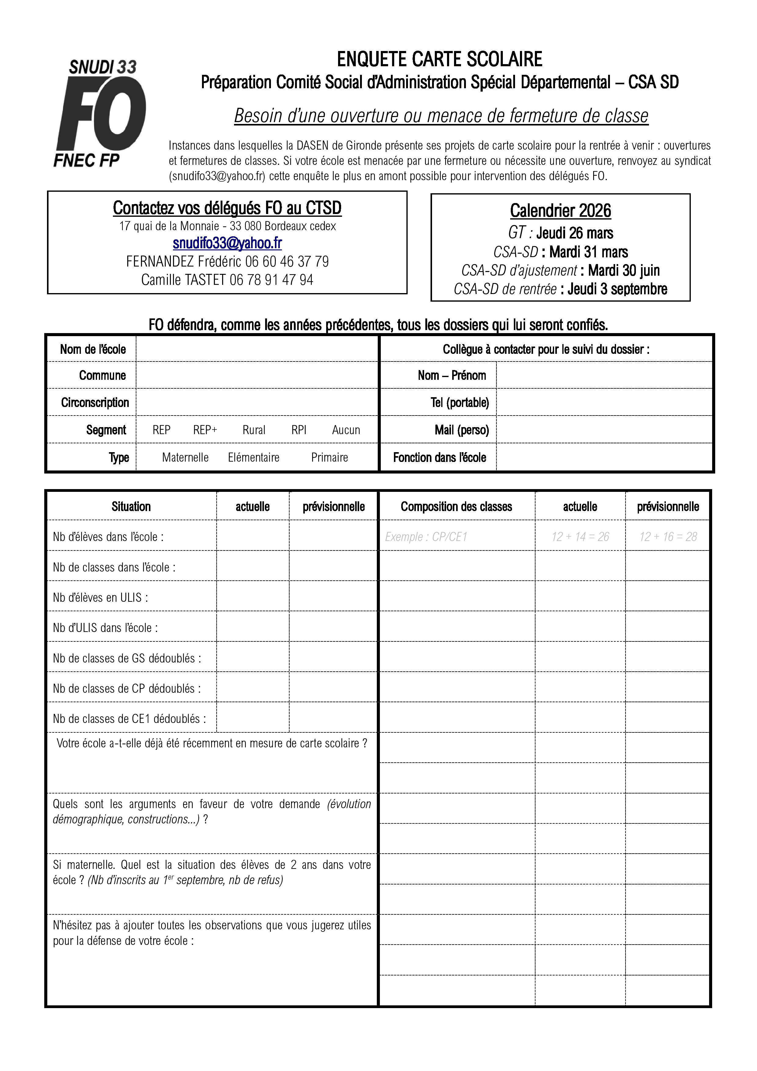 Audience du SNUDI FO 33 avec le DASEN - vendredi 17 octobre 2025