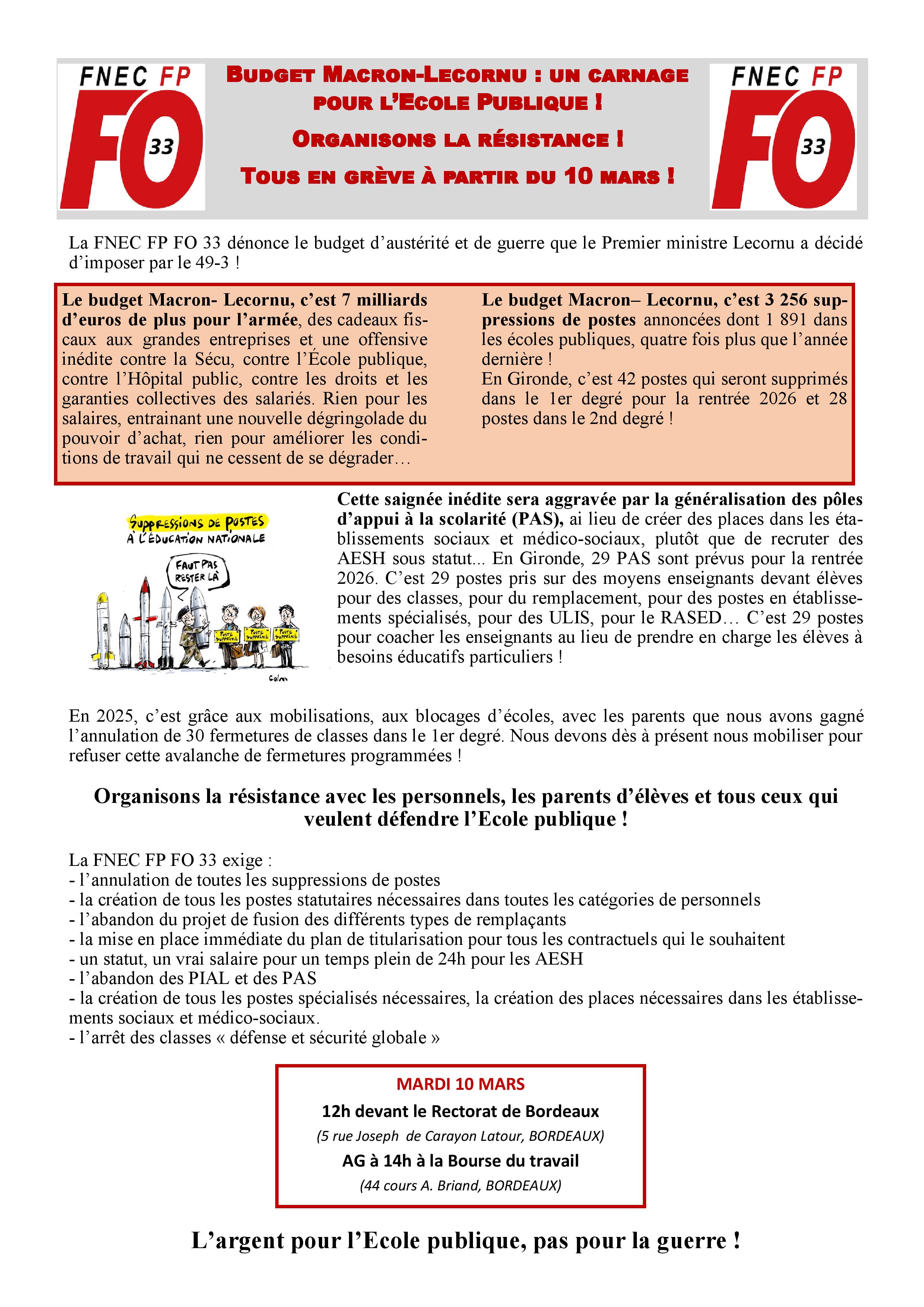 Résolution de la CE du SNUDI FO 33 - lundi 8 décembre