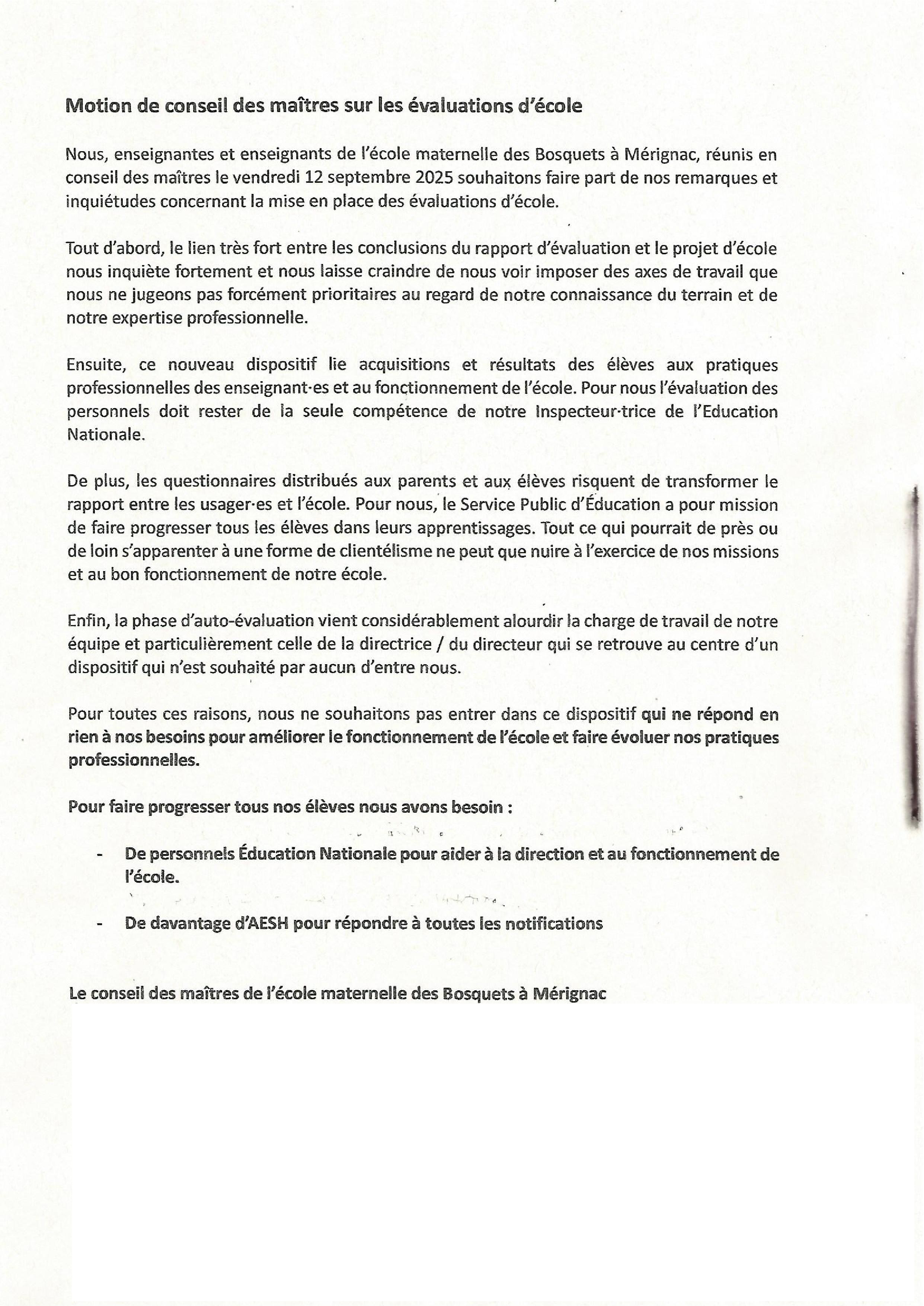 Plusieurs écoles ont déjà envoyé leurs motions de refus :
