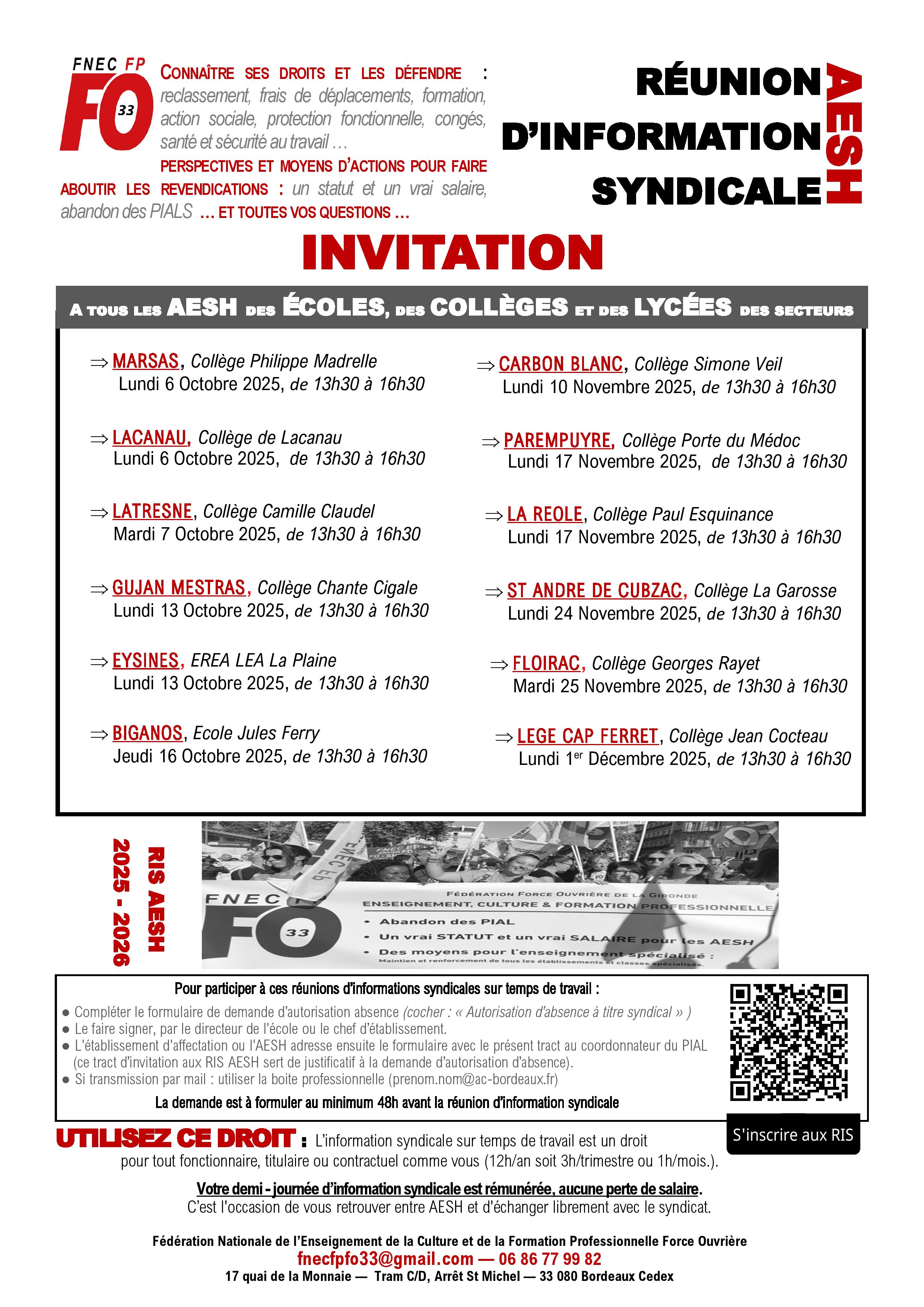 Réunions d'Informations Syndicales - AESH- Période 2 :